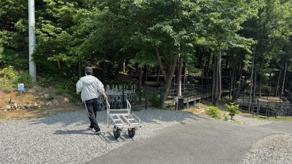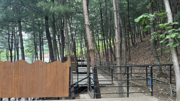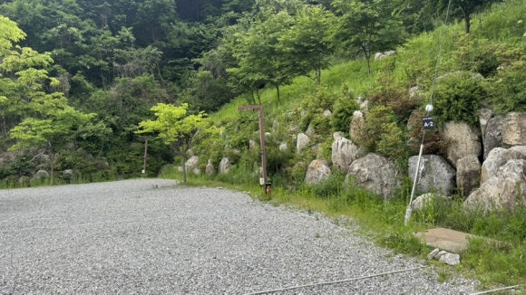 오르내리기엔 조금 힘들어 보였어요. 대신 파쇄석 사이트라서 사이트 바로 앞에 주차를 할 수 있는 점은 좋아보였어요.