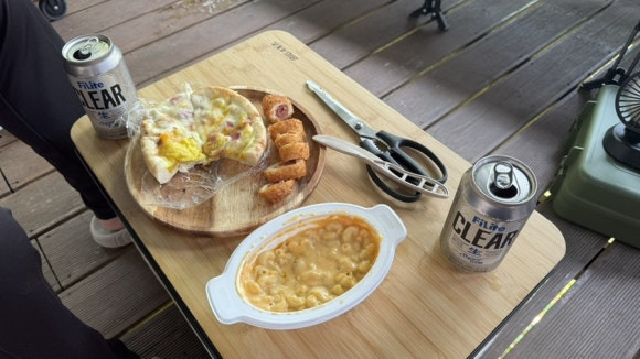 과자와 맥주는 텐트 안에 들어와서 마무리겸 오손도손 즐겼어요 ^^